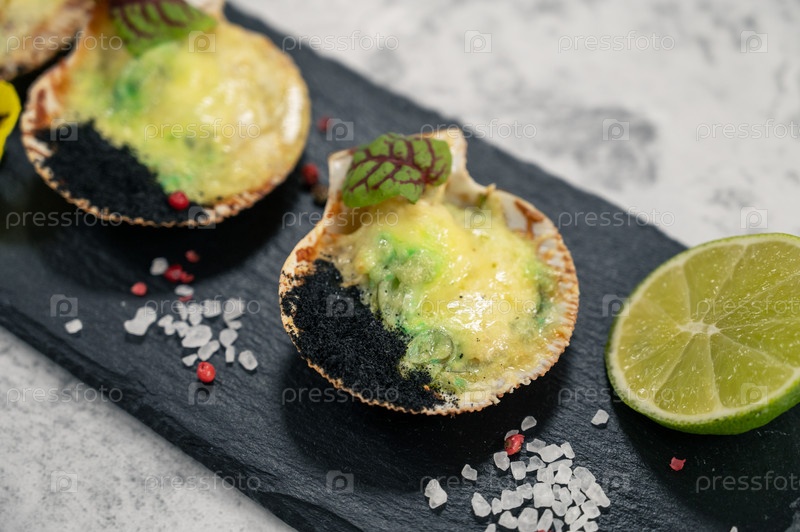 Нежнейшие жареные гребешки с сырными специями и водорослями чука