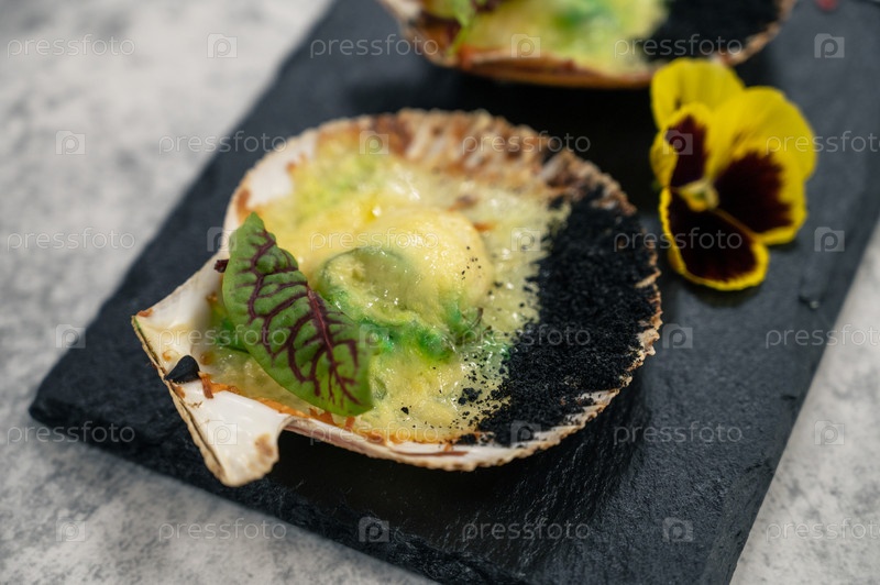 Нежнейшие жареные гребешки с сырными специями и водорослями чука