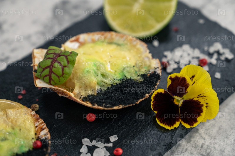 Нежнейшие жареные гребешки с сырными специями и водорослями чука