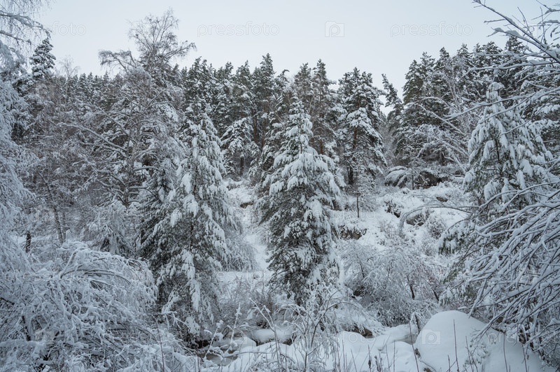Красота зимнего пейзажа с прекрасными деревьями под снегом