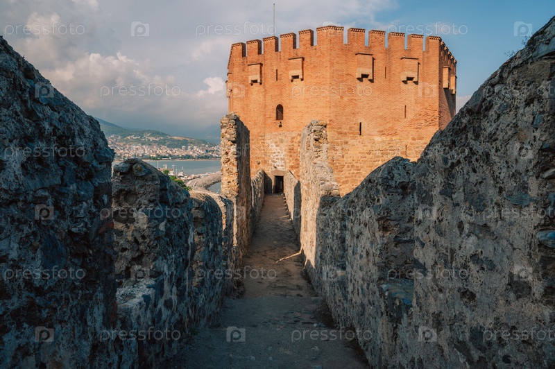 Руины крепости исторической Красной башни - Кызыл Куле, в замке Аланьи