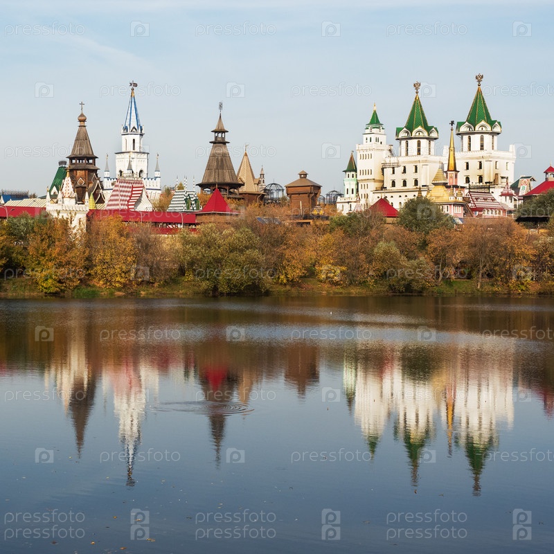 Панорама Измайловского кремля в Москве, культурно-развлекательного центра, стилизованного под русскую архитектуру XVI - XVII веков