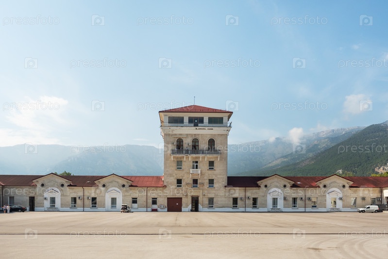 Ялта, Крым - 20 сентября 2020 года: Здание Массандровского винзавода, виноградного винодельческого предприятия пищевой промышленности на южном берегу Крыма