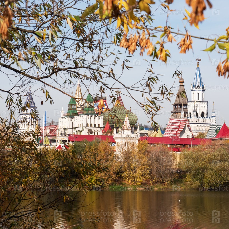 Панорама Измайловского кремля в Москве, культурно-развлекательного центра, стилизованного под русскую архитектуру XVI - XVII веков