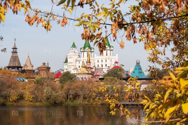 Панорама Измайловского кремля в Москве, культурно-развлекательного центра, стилизованного под русскую архитектуру XVI - XVII веков