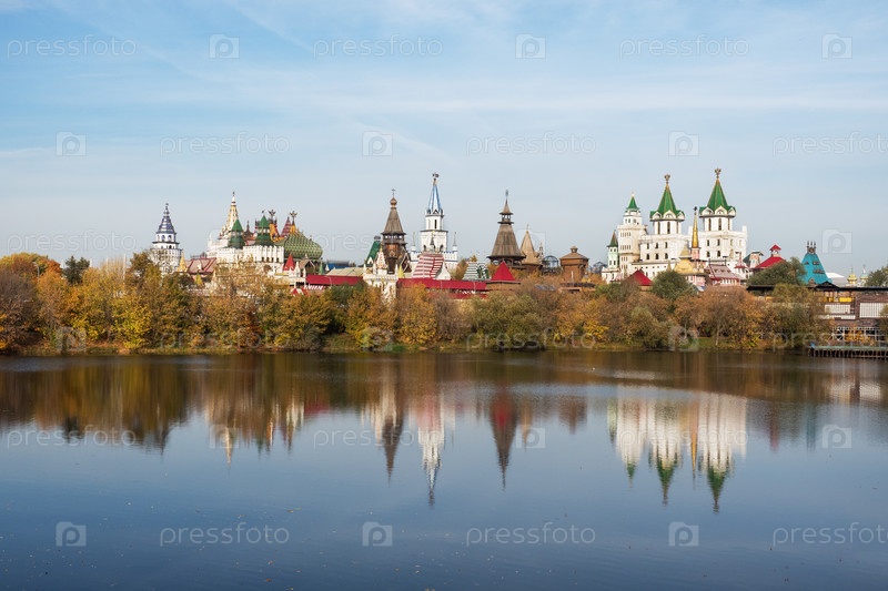 Панорама Измайловского кремля в Москве, культурно-развлекательного центра, стилизованного под русскую архитектуру XVI - XVII веков