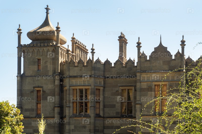 Ялта, Крым - 20 сентября 2020 года: Воронцовский дворец в Крыму, Алупкинский дворцово-парковый музей-заповедник. Исторический памятник архитектуры
