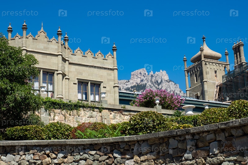 Ялта, Крым - 20 сентября 2020 года: Воронцовский дворец в Крыму, Алупкинский дворцово-парковый музей-заповедник. Исторический памятник архитектуры