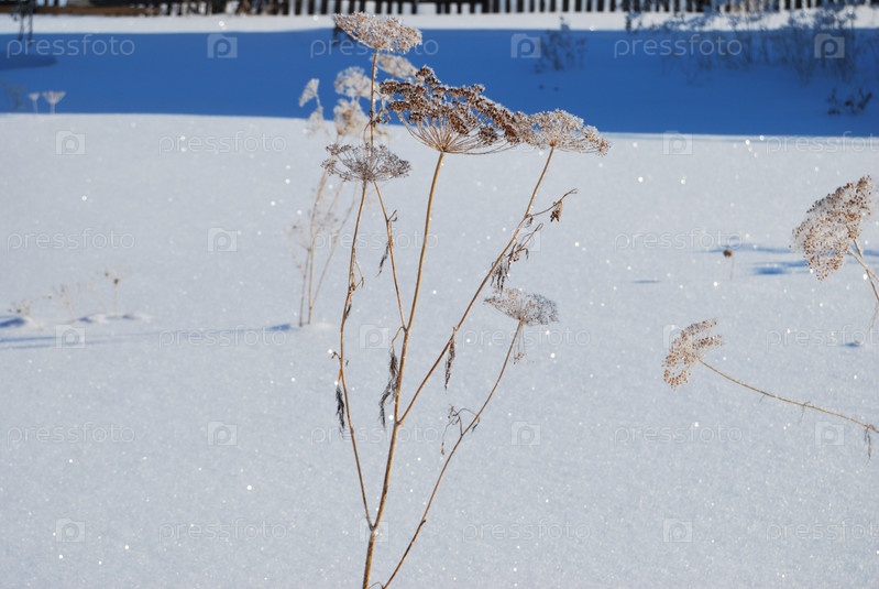 Растения, покрытые снегом, Омская область, Россия