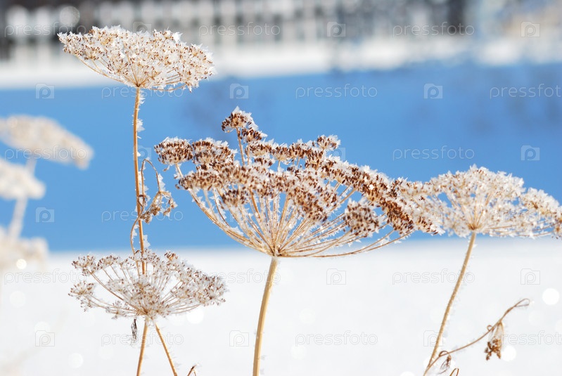 Растения, покрытые снегом, Омская область, Россия