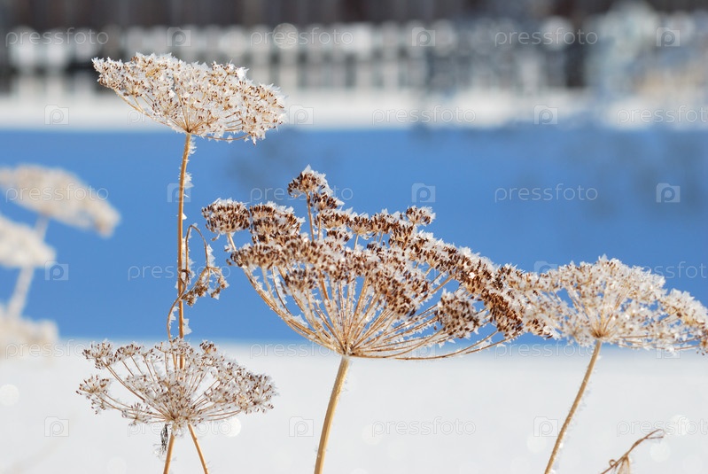 Растения, покрытые снегом, Омская область, Россия