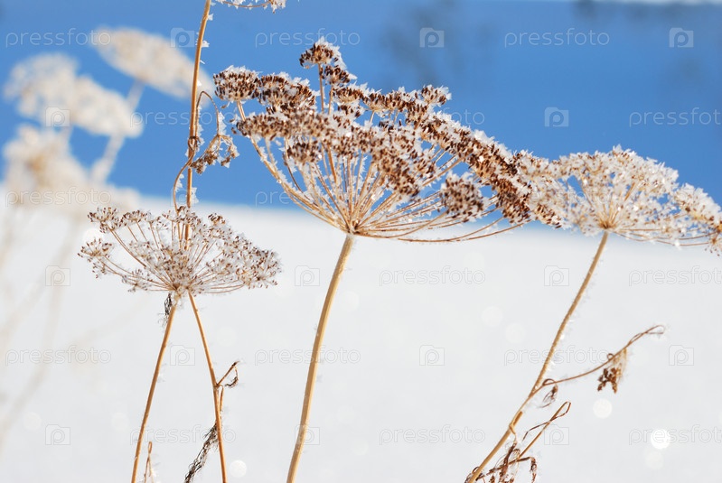 Растения, покрытые снегом, Омская область, Россия