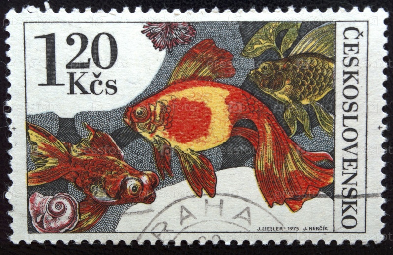 Почтовая марка с отметкой Чехословакии 1975 г. Аквариумные рыбки Золотая рыбка (Carassius auratus)