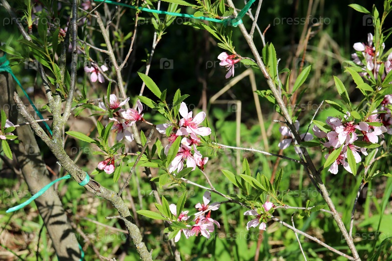 Цветущий куст миндаля в солнечный весенний день
