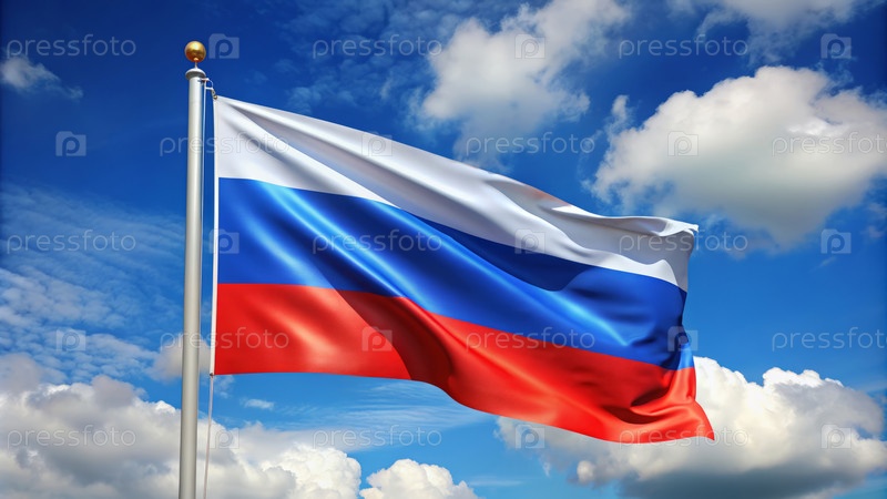 Российский флаг на фоне неба и облаков