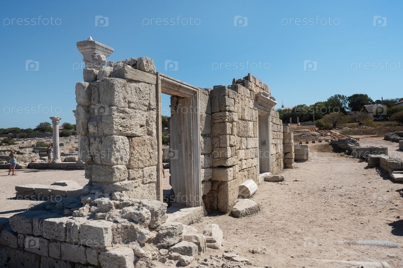 Севастополь, Крым - 20 сентября 2020 года: Руины старого города Херсонес Таврический, историко-архитектурный памятник-музей-заповедник на черноморском побережье Крыма