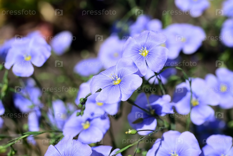 Цветки синего льна в саду. Linum usitatissimum