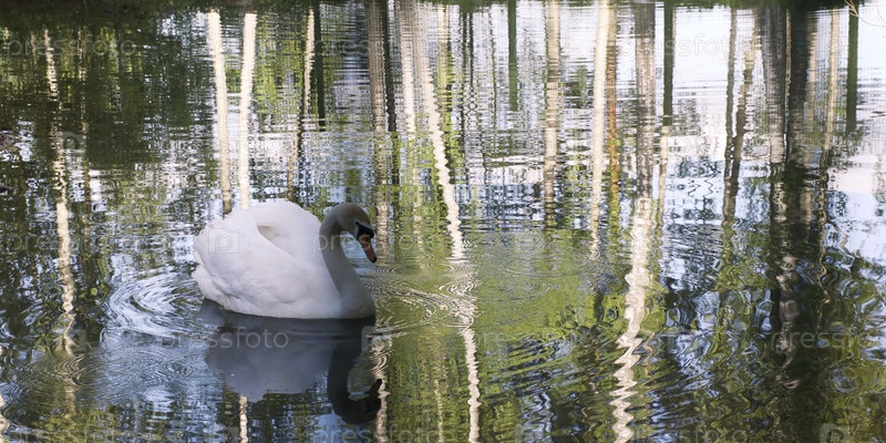 Белый лебедь на пруду