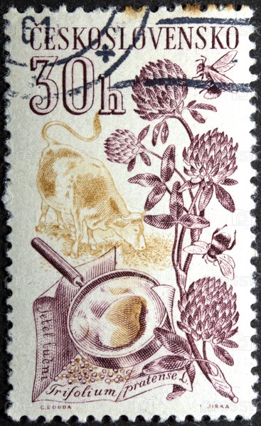 Почтовая марка с отметкой Чехословакии 1961 г. Сельское хозяйство Клевер лугового (Trifolium pratense L.)