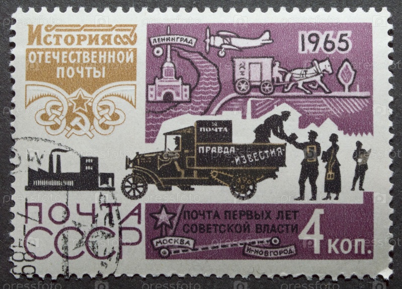 Почтовая марка СССР 1965 год. Почта первых лет советской власти. История отечественной почты. Марка с гашением