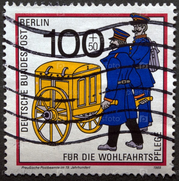 Почтовая марка с гашением Германия (Западный Берлин) 1989 год. Прусский почтовый служащий (19 век)