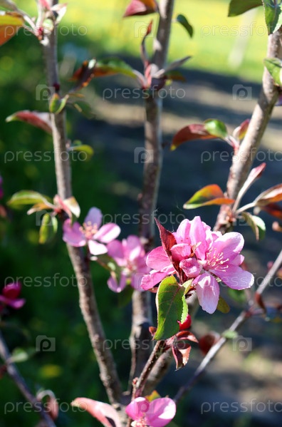 Цветущая яблоня Китайка - крупный план