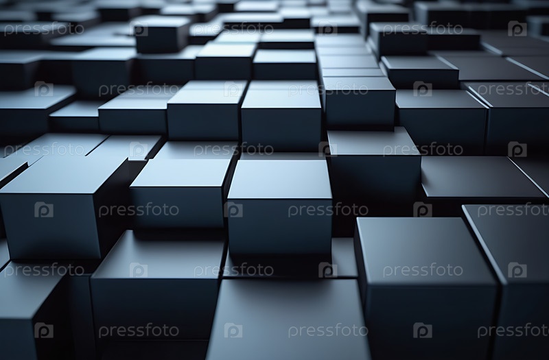 Темный фон, абстрактные геометрические блоки, 3D-рендеринг