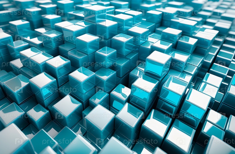 Светлый фон, летающие абстрактные геометрические стеклянные блоки, 3D-рендеринг