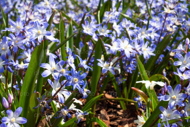 Красивые голубые цветы подснежников, весенняя первоцвет в саду