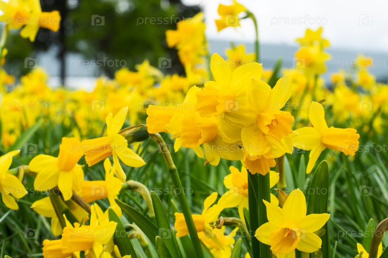 В парке растут красивые нарциссы желтые нарциссы на солнце