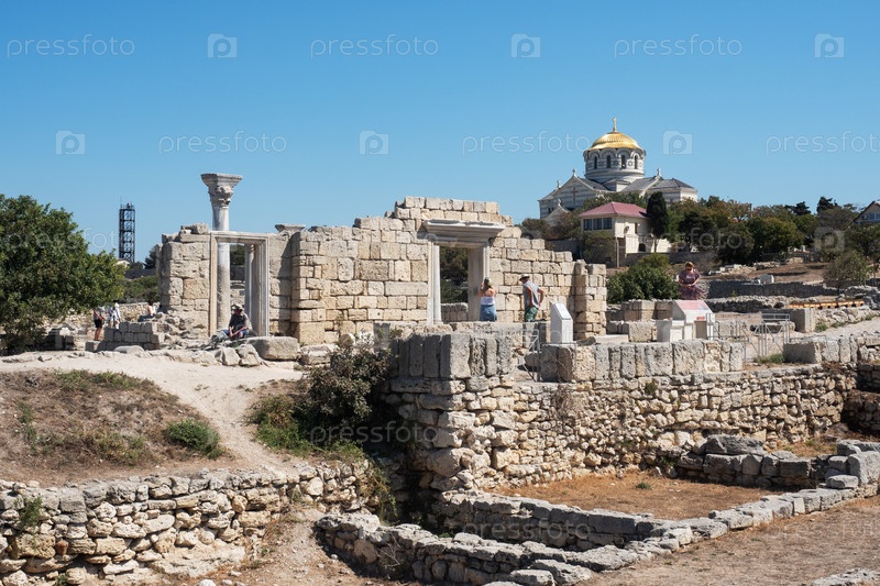 Севастополь, Крым - 20 сентября 2020 года: Руины старого города Херсонес Таврический, историко-архитектурный памятник-музей-заповедник на черноморском побережье Крыма