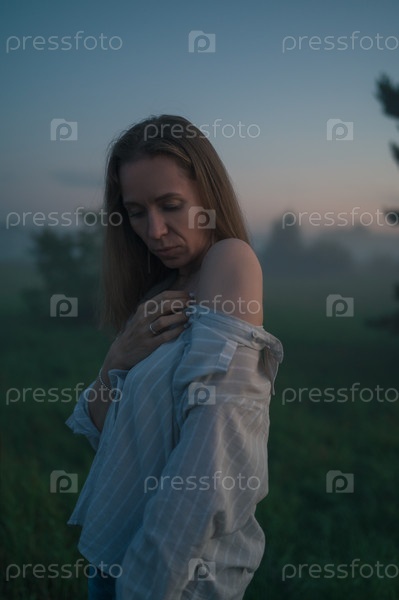 Женщина в поле с туманом