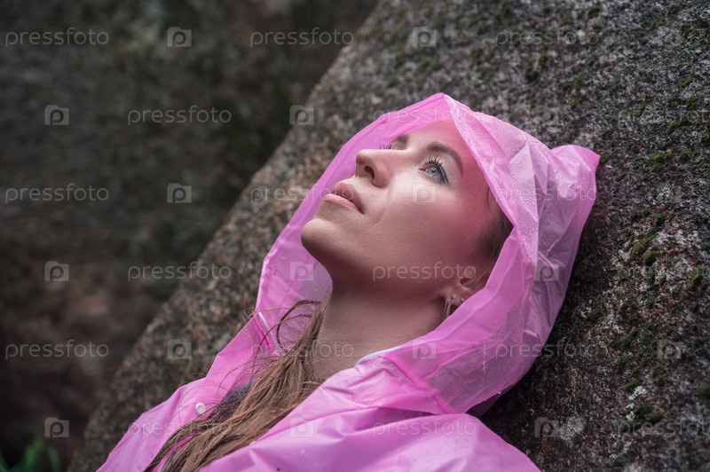 Портрет женщины в плаще тайга лес и скалы заповедника Столбы, Красноярск, Россия