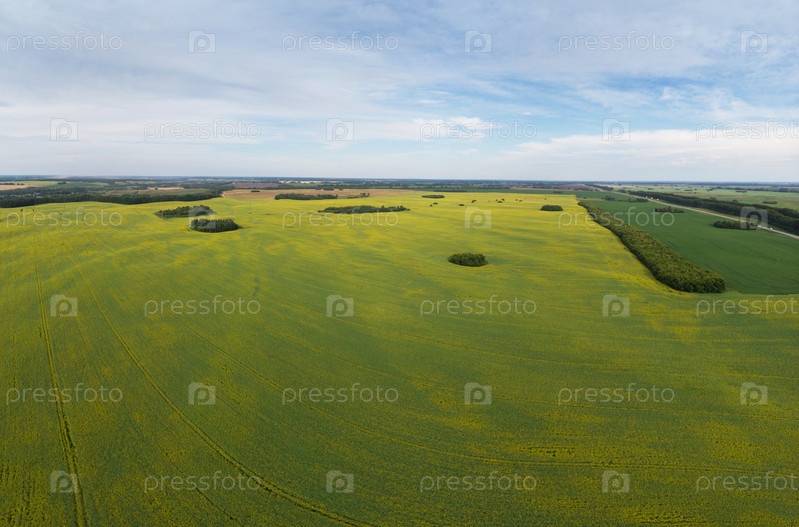 Вид с воздуха на культивируемое поле рапса с точки зрения дрона