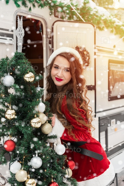 Красавица в костюме Санты в зимнем лагере