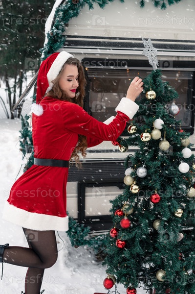 Красавица в костюме Санты в зимнем лагере