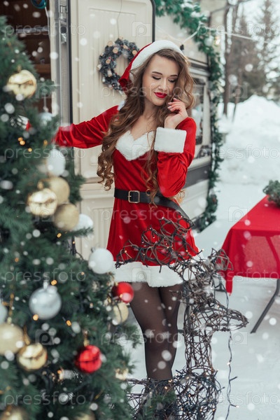 Красавица в костюме Санты в зимнем лагере