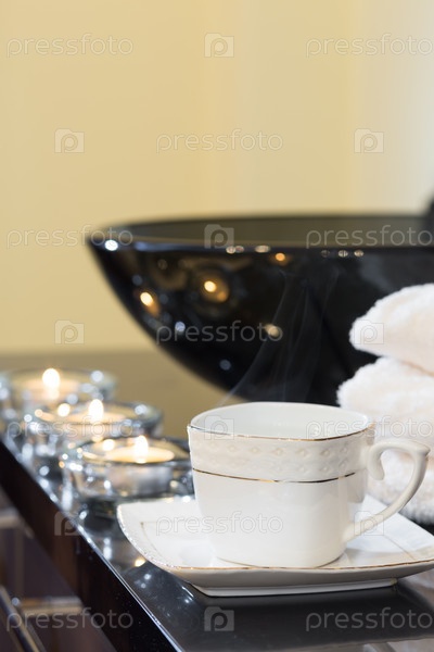 Горящие свечи и куча полотенец