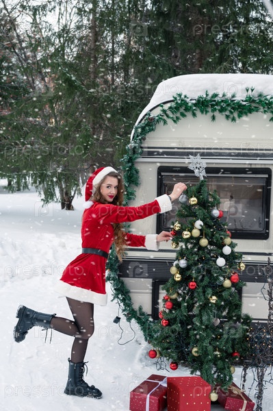 Красавица в костюме Санты в зимнем лагере