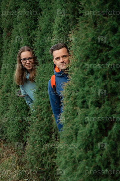 Счастливая пара в осеннем парке