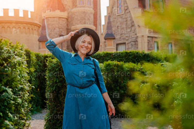 Молодая женщина гуляет в тематическом парке.Москва