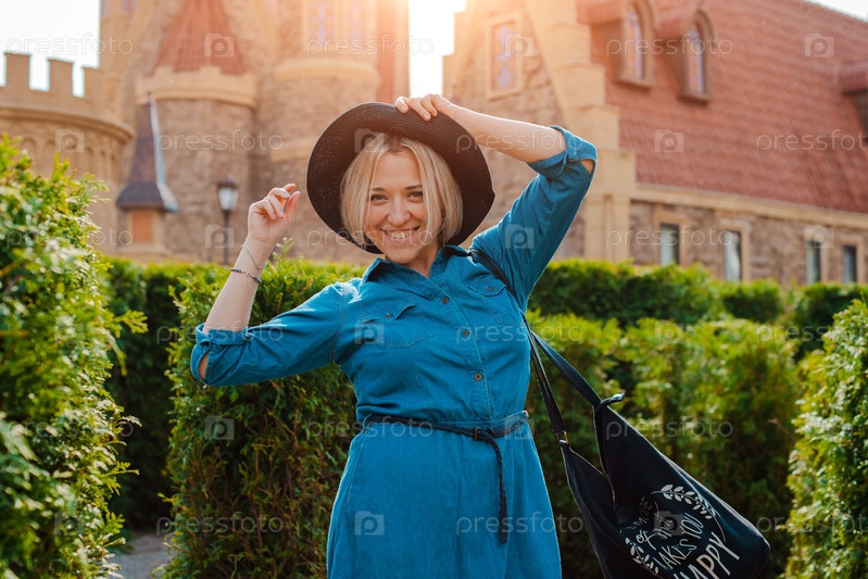 Молодая женщина гуляет в тематическом парке.Москва