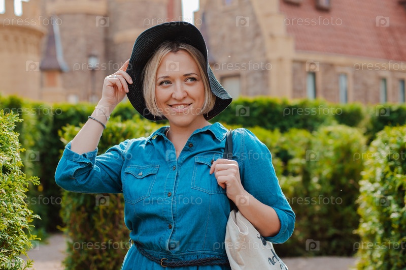 Молодая женщина гуляет в тематическом парке.Москва