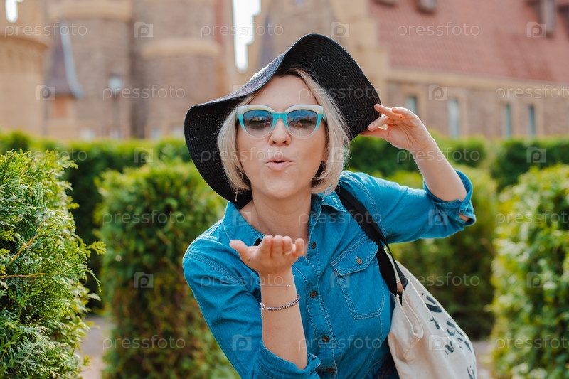 Молодая женщина гуляет в тематическом парке.Москва