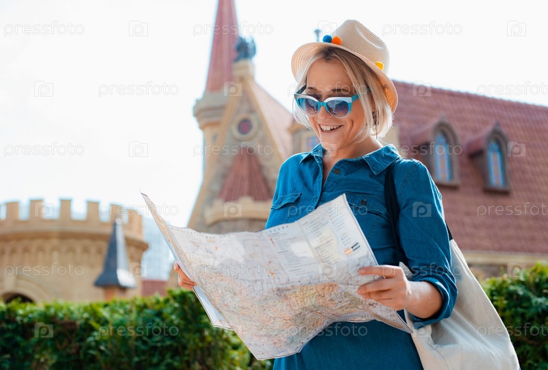Молодая женщина гуляет в тематическом парке.Москва