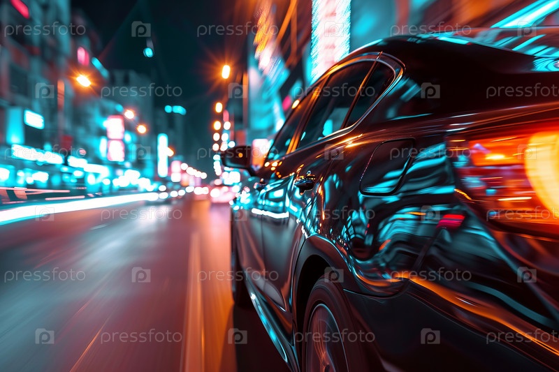 Автомобиль мчится по ночному городу