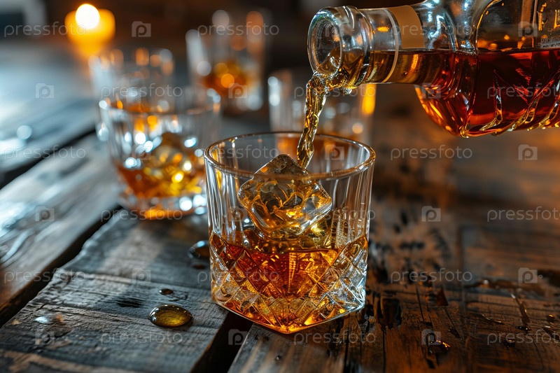 Наливаем виски из бутылки в стакан для виски