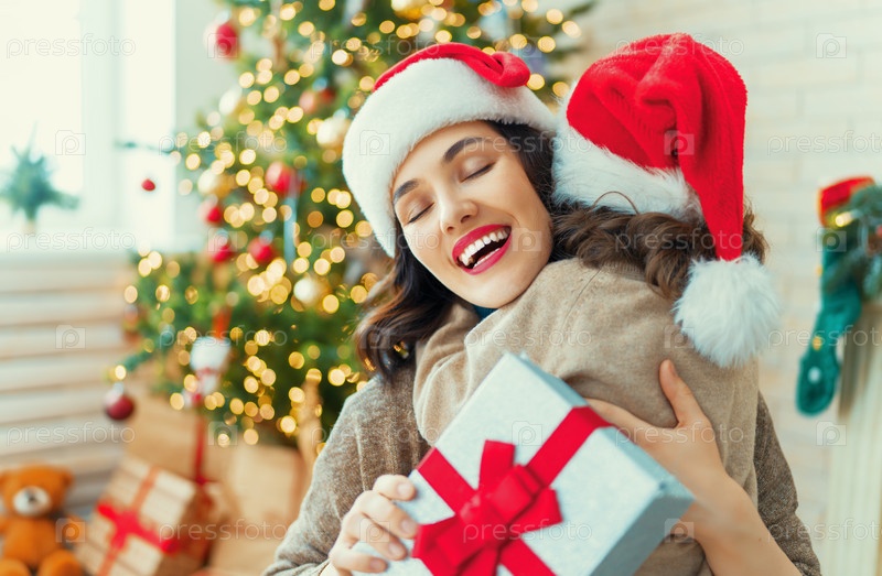 Семья празднует Рождество