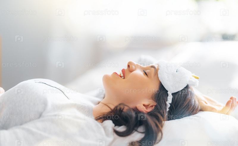 Женщина просыпается в спальне