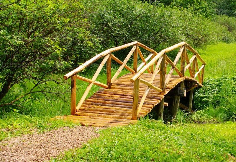 Деревянный мост через ручей в парке